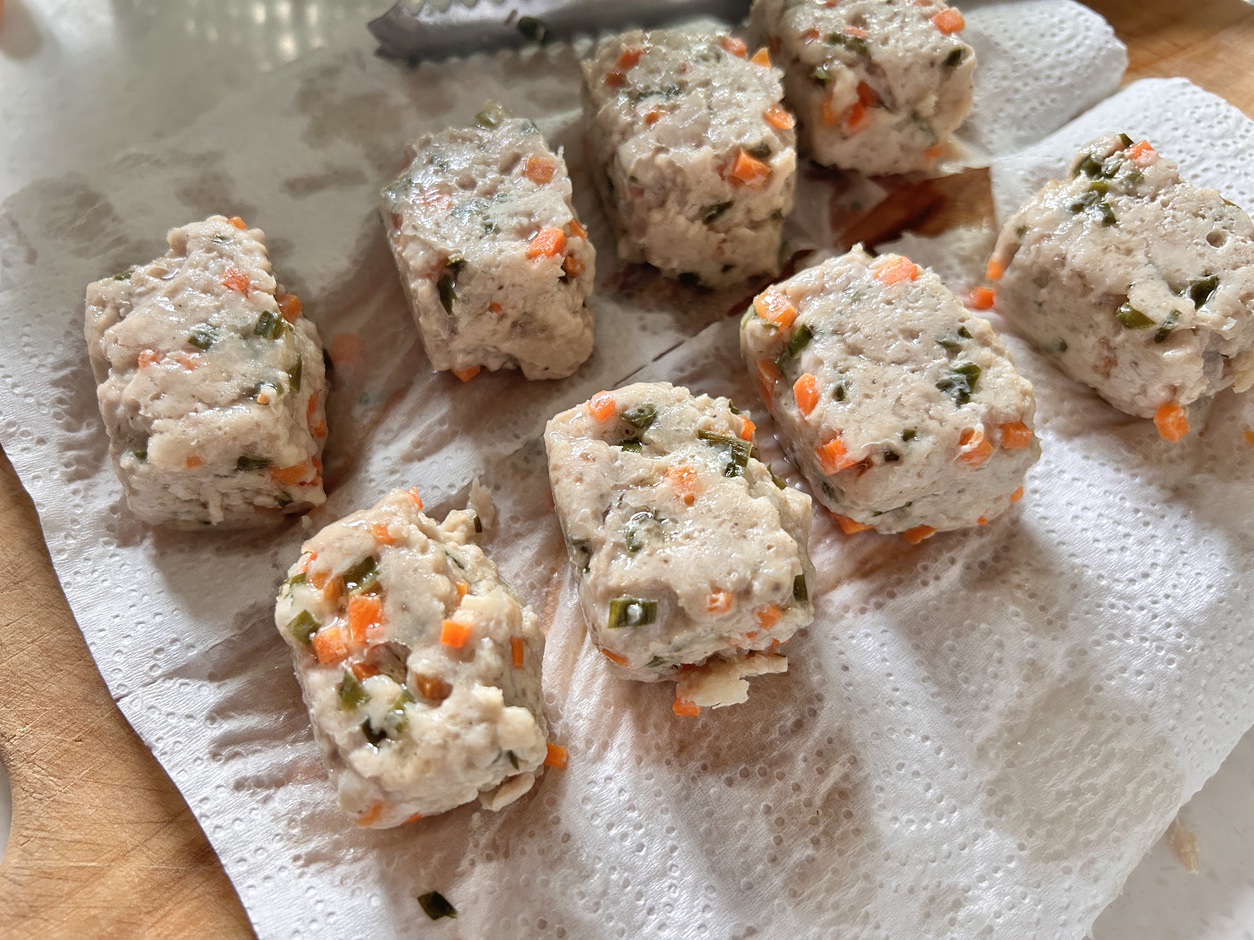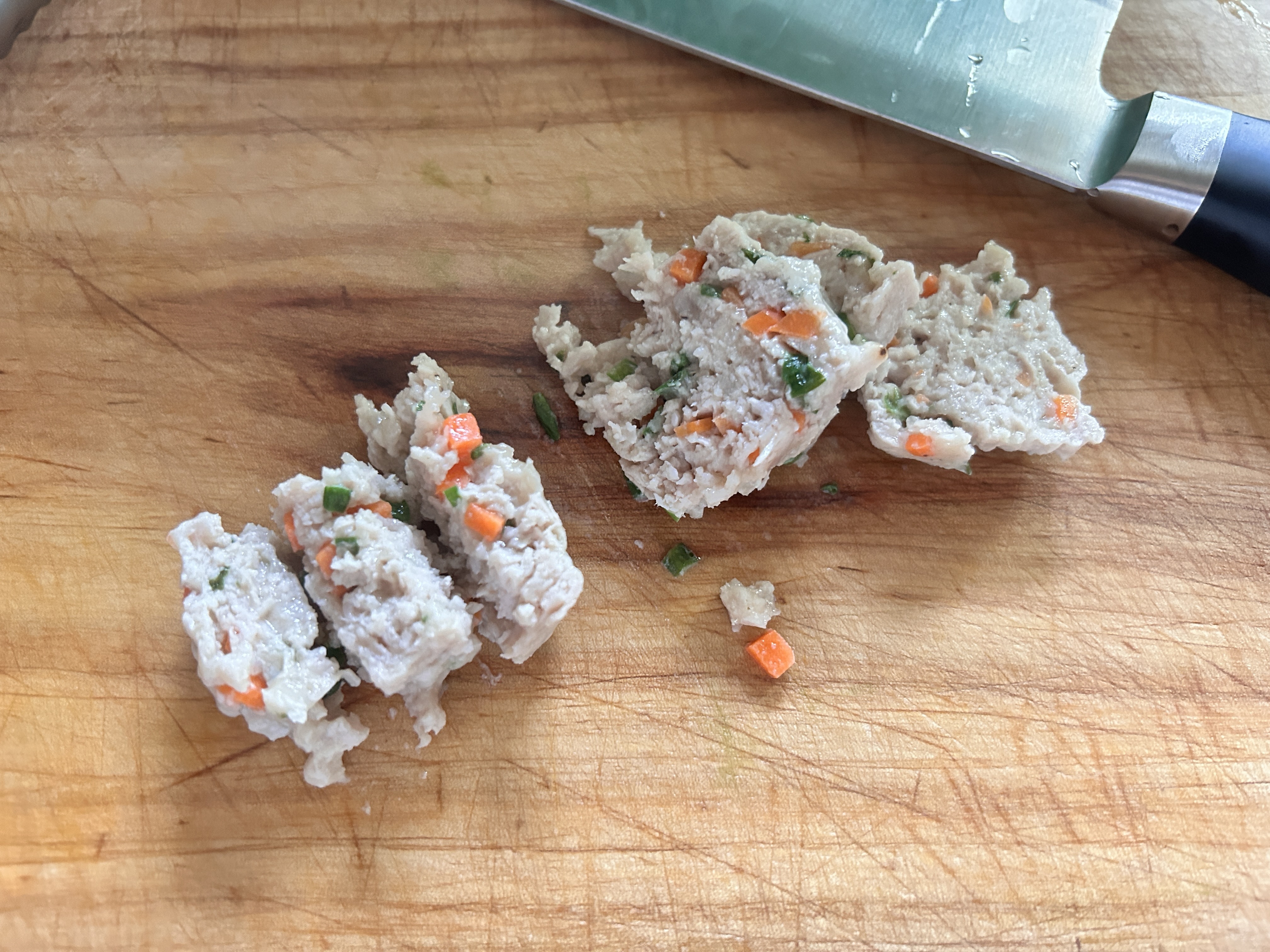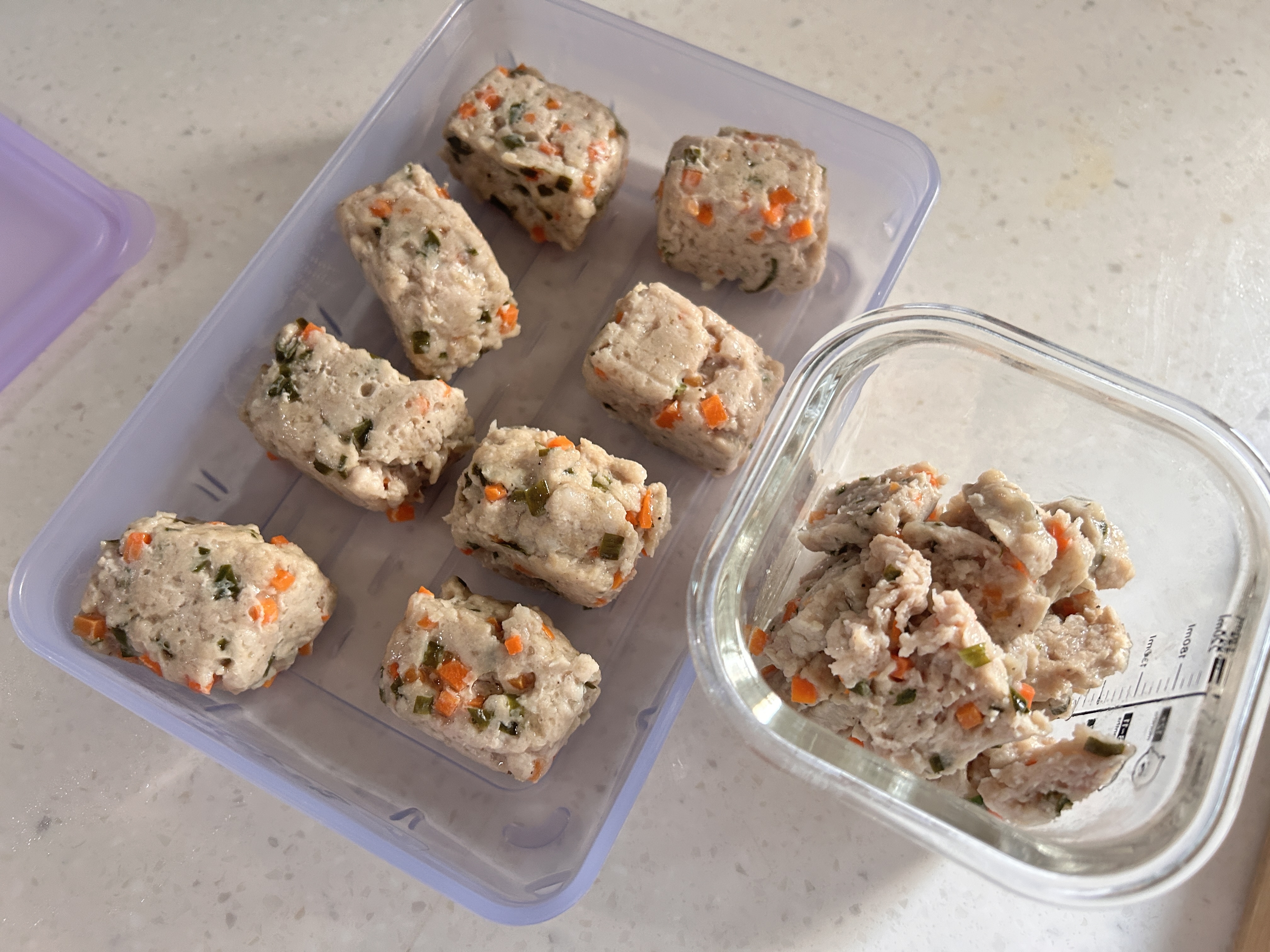 - 닭 가슴살(또는 돼지고기 안심)을 곱게 다지거나, 블렌더에 갈아줍니다.