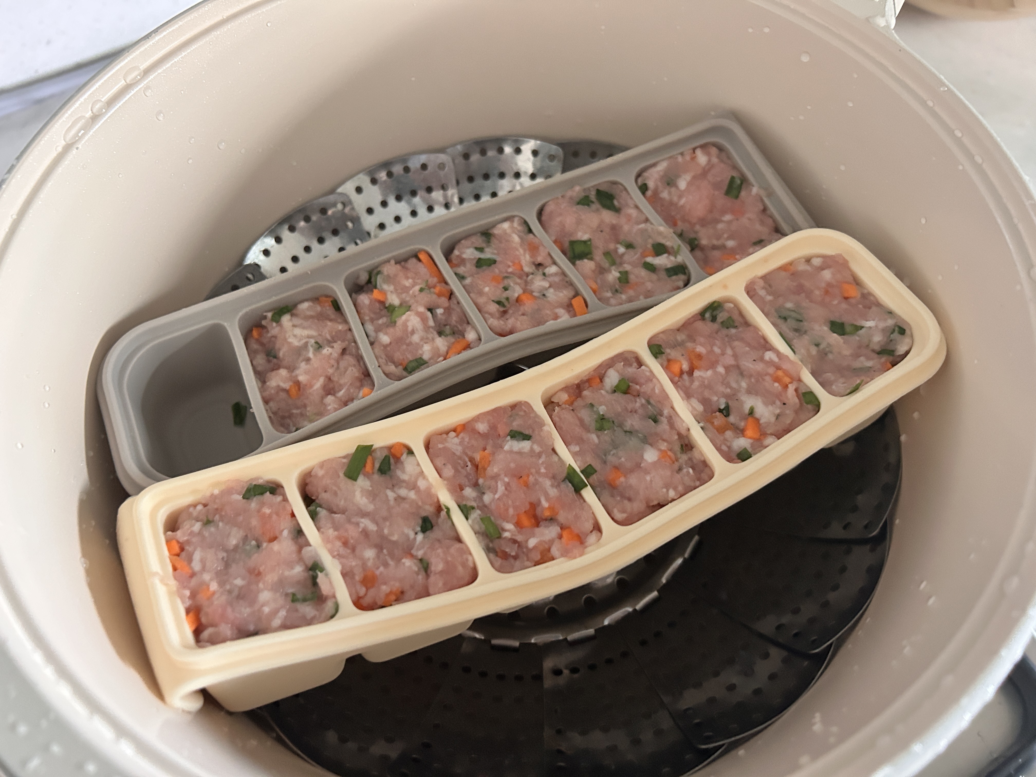 - 찜기에 물을 넣고 김이 올라오면, 햄 반죽을 넣고 중불에서 20~25분간 찝니다.