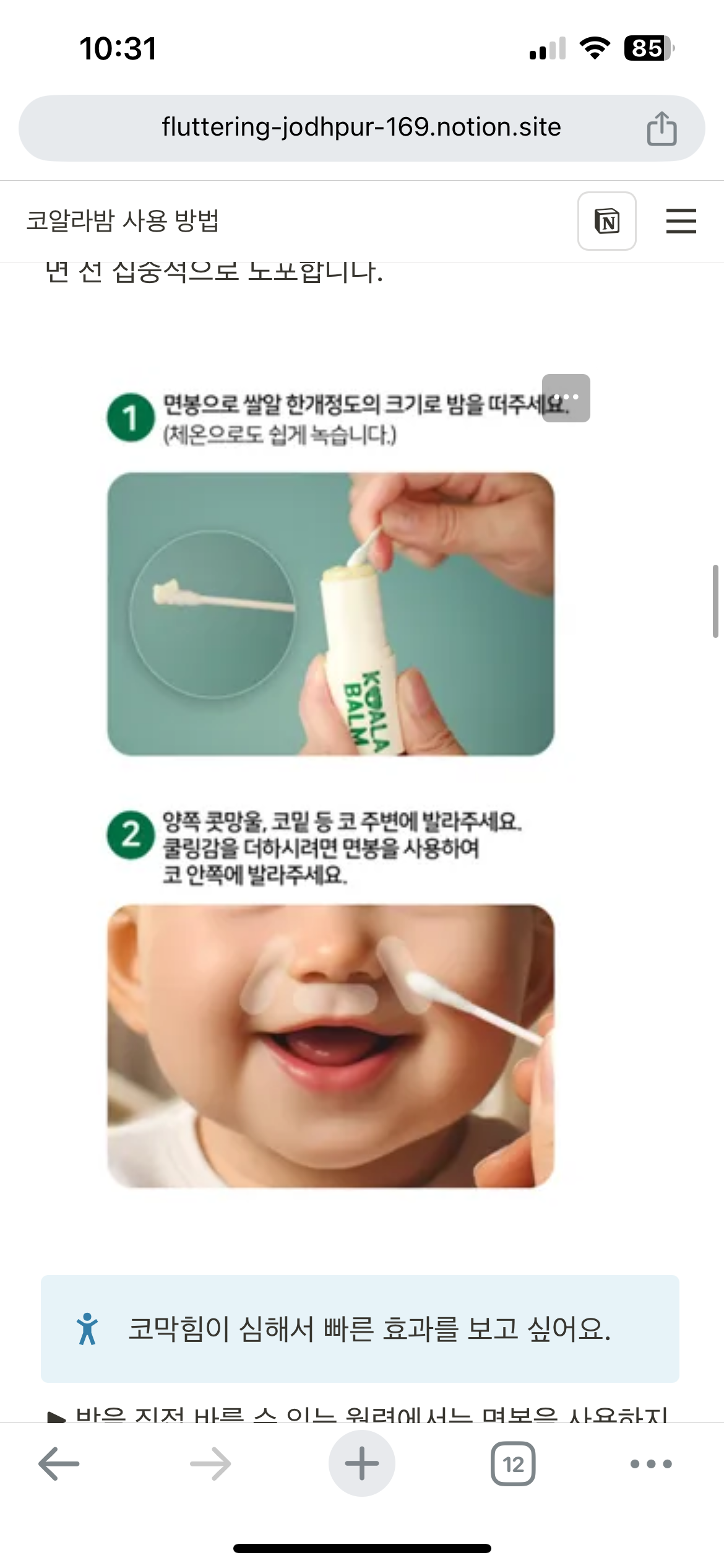 •부모도 사용 가능: 코막힘 있는 날, 저도 코 밑에 살짝 발라서 써봤는데 진짜 괜찮더라고요.