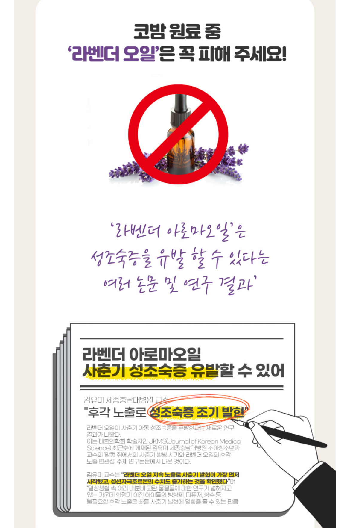 * 성조숙증을 일으킬 수 있는 라벤더 오일이 첨가되지 않은 점이 가장 좋았어요!!*