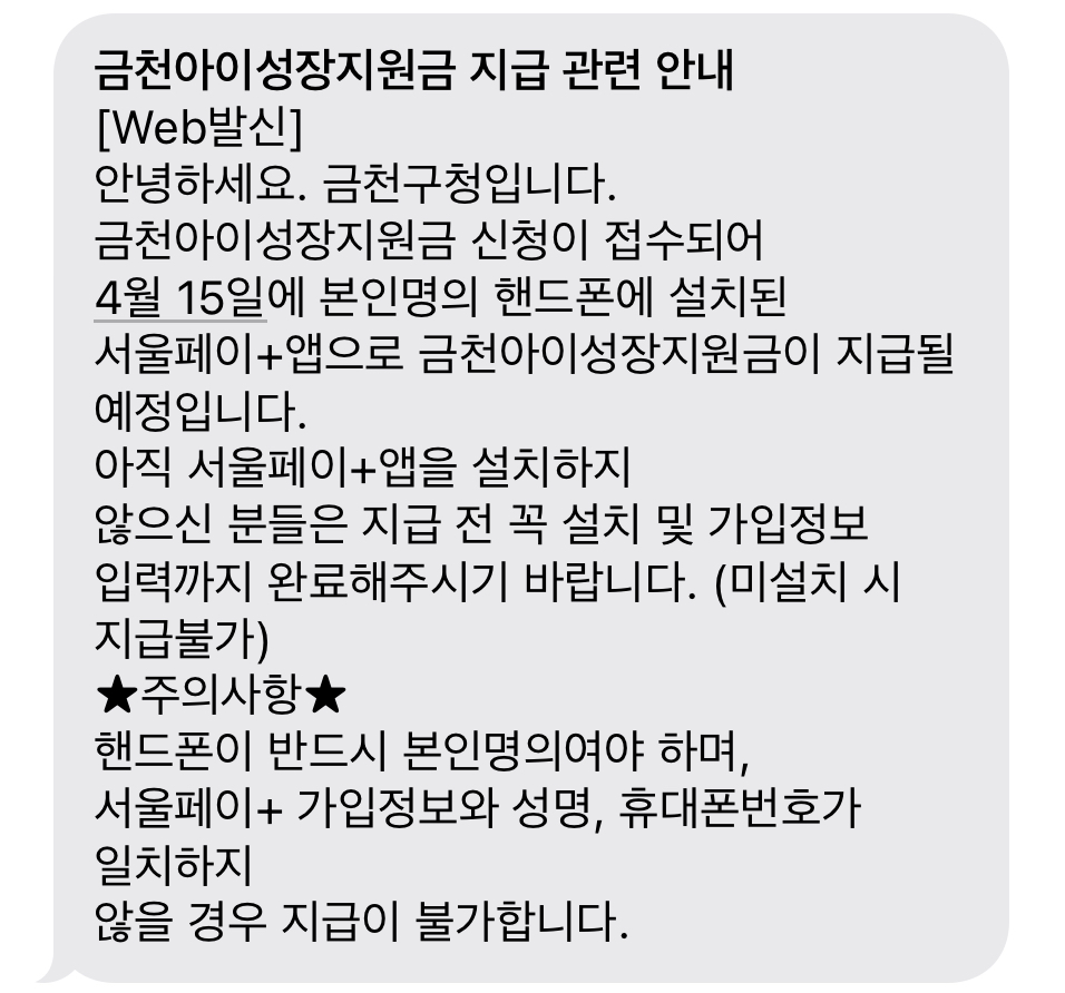 신청하고 다음 달 7일에 문자가 띵동 도착했다