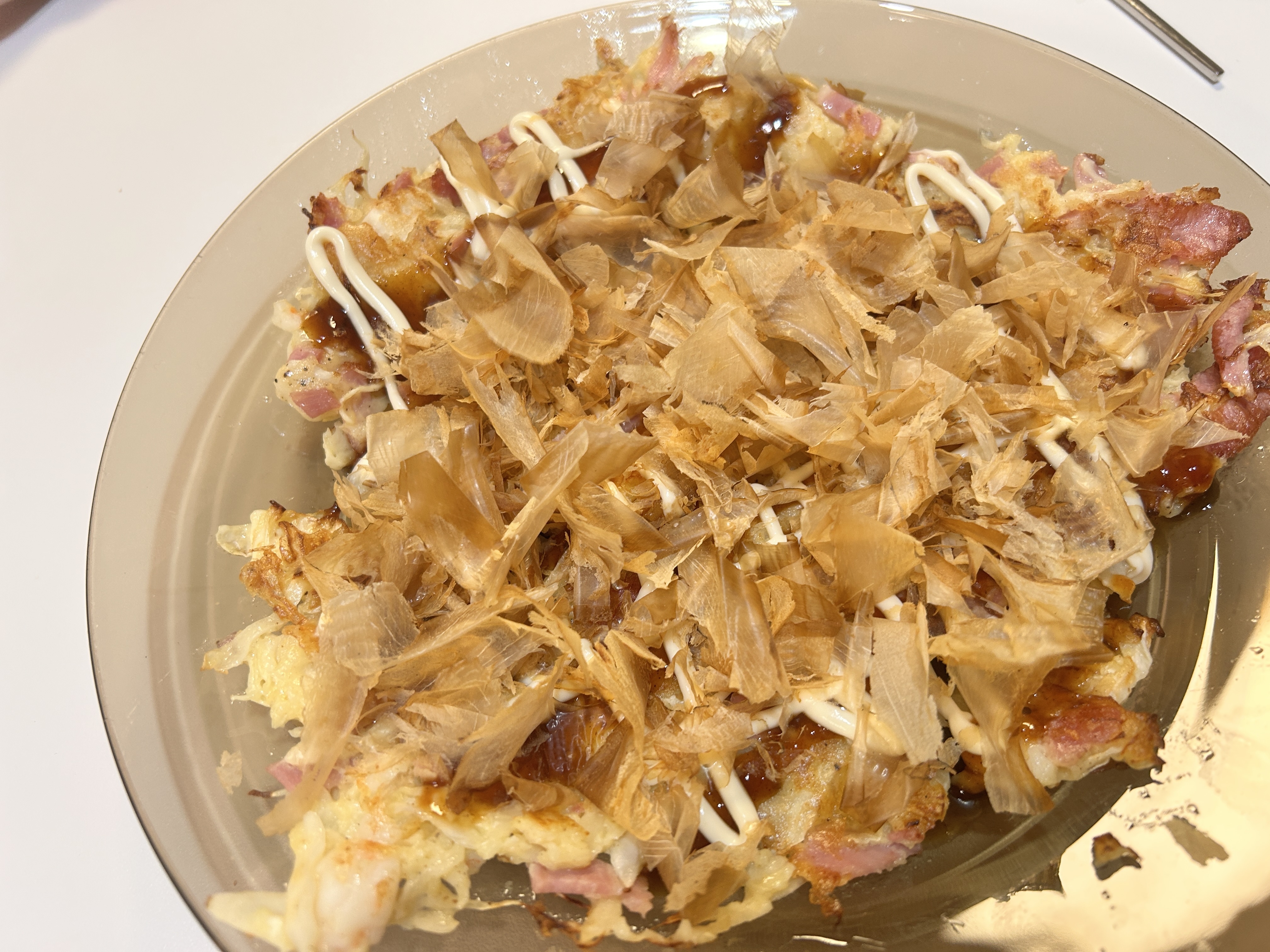 오꼬노미야끼(お好み焼き)는 일본식 부침개로, 부드러운 반죽에 양배추와 다양한 재료를 넣어 만드는 요리입니다.